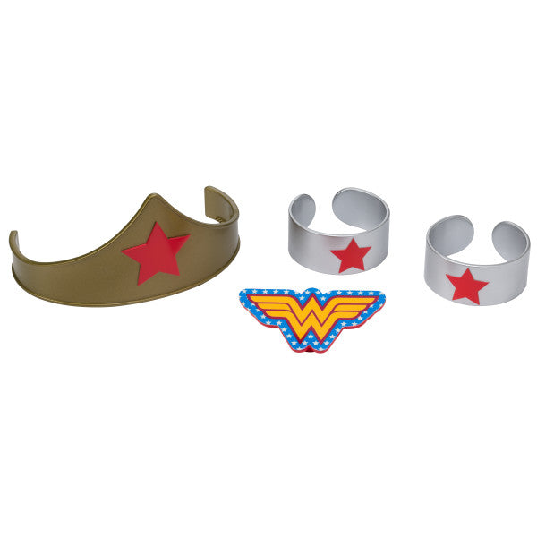 5-piece set. Combed tiara, cuffs and clipped pendant.