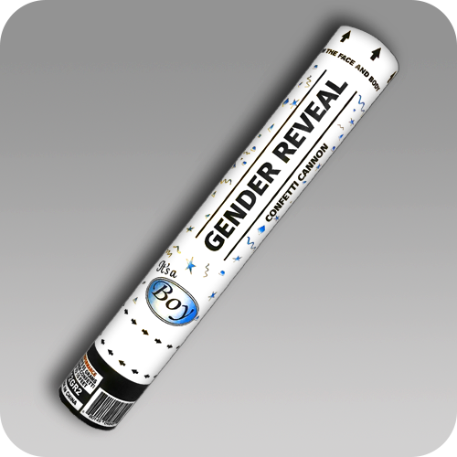 This product is compressed air cannons that are perfect for boy gender reveal parties. Our 12” blue confetti cannons are specifically designed for gender reveal parties. The labels on the product are gender neutral allowing the reveal to remain a surprise. The gender reveal cannon will shoot blue confetti shaped as rectangles. This large confetti cannon has an average length of 12 inches. The confetti cannons are easy to use, simply hold in one hand and twist the bottom with the other. The cannons will shoot the confetti up to 15 feet in the air. Also, our bulk wholesale pricing will help you stay under budget. Perfect for gender reveal parties!