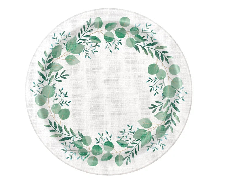 Subtle, classy, and natural. These Eucalyptus Greenery Plates are incredibly pretty and perfect for an upscale celebration. Pick from 3 different sizes based on your menu. This watercolor greenery design on linen is perfect for a Baby & Brunch, Oh Baby, Baby in Bloom, Let Love Grow, Bridal Brunch, or Wedding.