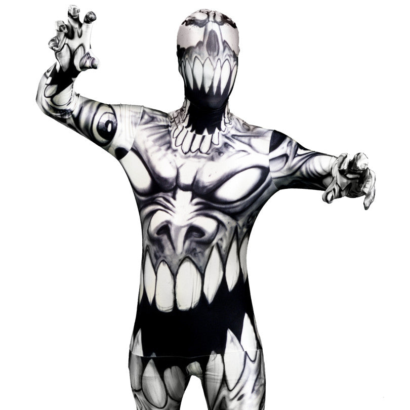 Let's get real weird, real creepy and real scary with the Mouth Morphsuit this Halloween. This Morphsuit comes with a high quality digital all-over print that's as downright disturbing as it is impressive. Each Morphsuit is crafted from breathable material that you can even drink through without removing the headpiece.