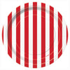 Classic red and white striped design plates. Perfect for circus themed parties and more!