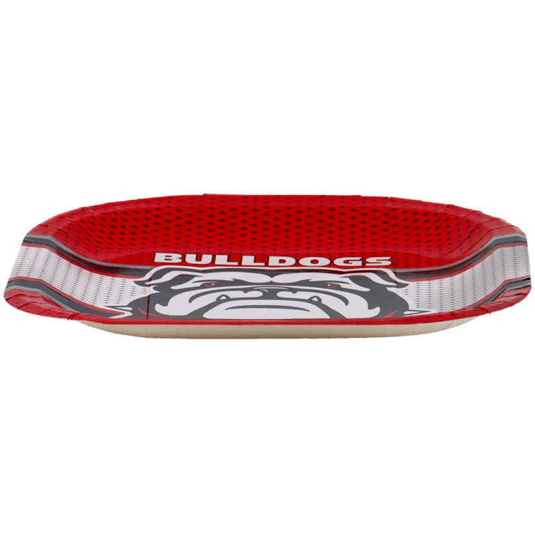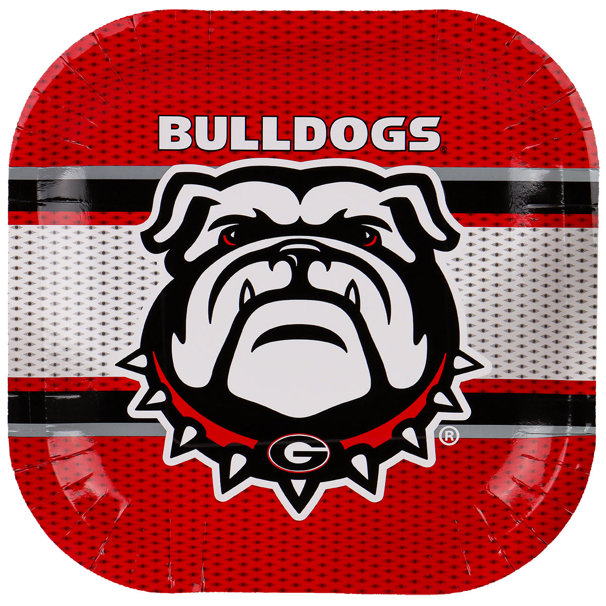 Havercamp Party Products presents our University of Georgia 9-inch sturdy square paper plates featuring “Bulldogs” in the center. Comes in a pack of 8 plates.