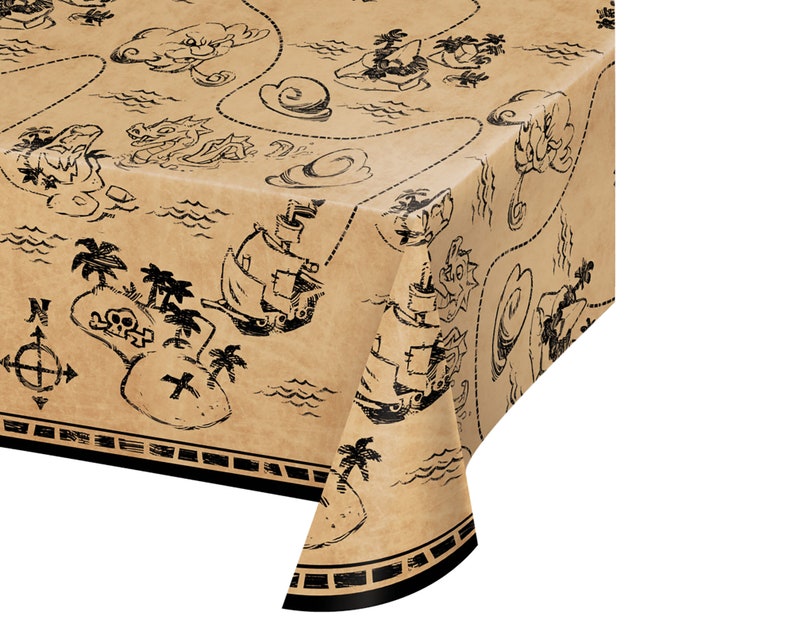 AHOY MATEYS! Create a Yo Ho Ho Party with this fun Pirate Party Tablecloth. This design includes images of gold, gems, grand ships, and a fun pirate parrot! Perfect for Pirate Party, Arggh Matey, P-ARRRG-TY, Pirates or Mermaids, and more! Make sure to check out my entire etsy store for gold coins, gold nuggets, pirate chests, ship centerpieces, and more! This tablecloth works great as a pirate party backdrop too!