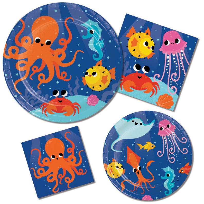 Our new Ocean Celebration design will make a BIG splash with little sea lovers. Featuring brilliantly colored octopuses, seahorses, blow fish, and other sea creatures.