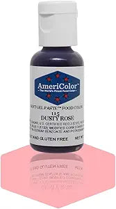 Americolor Dusty Rose Soft Gel Paste.  Nothing you have ever tried equals the coloring strength of these amazing colors! Packaged in convenient 3/4 oz. squeeze bottles, Soft Gel Paste Colors can be dispensed one drop at a time so you can achieve precise, easy to repeat colors. Imagine the coloring power of a paste in an easy-to-use gel, with matching air brush colors equal in strength.