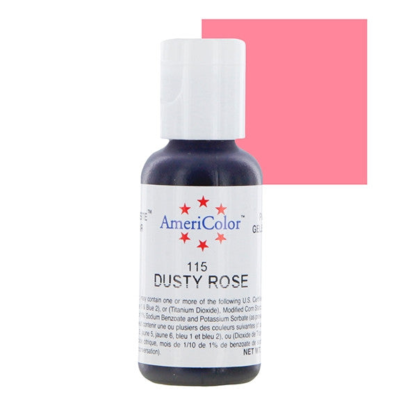 Americolor Dusty Rose Soft Gel Paste. Nothing you have ever tried equals the coloring strength of these amazing colors! Packaged in convenient 3/4 oz. squeeze bottles, Soft Gel Paste Colors can be dispensed one drop at a time so you can achieve precise, easy to repeat colors. Imagine the coloring power of a paste in an easy-to-use gel, with matching air brush colors equal in strength.