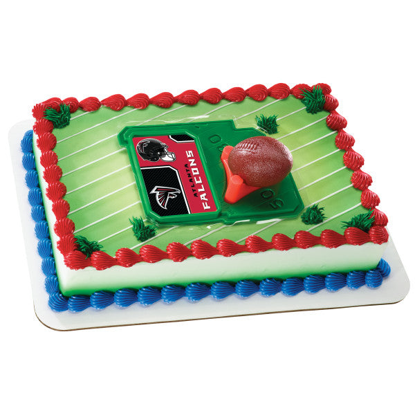 Score a touchdown with your favorite NFL football fan! This DecoSet celebrates the special occasion with The Atlanta Falcons with a green field plaque with the teams logo, football and tee. Officially Licensed Product of the National Football League. 3-Piece set.
