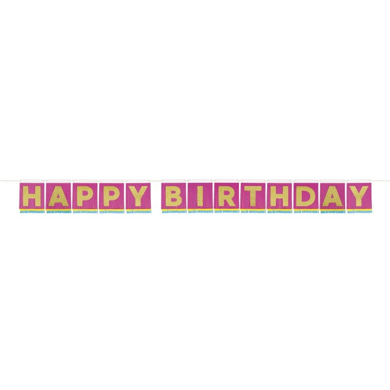 Hot Pink & Gold Tissue Fringed Birthday Banner
