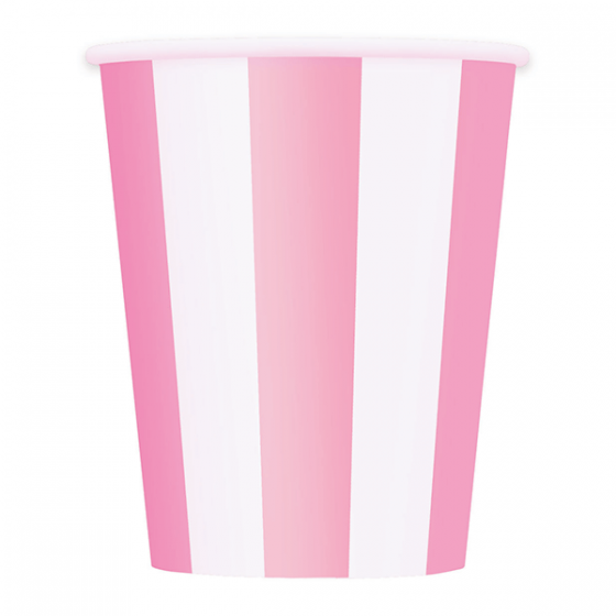 Get pretty in pink while sipping your baby shower drinks. Raise a toast to the little lass with our Lovely Pink Stripes Paper Cup. The stripes run vertically and are capped with a rolled white lip. The paper cups are sold in a package of 6 and each holds 12 ounces.