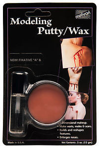 This carded combination also gives you easy to apply non-toxic Fixative A (.125 oz.) by Mehron to adhere your Modeling Wax/Putty without mess. This carded Modeling Wax/Putty with Fixative A is packaged for smaller Special Effects Makeup Applications.
